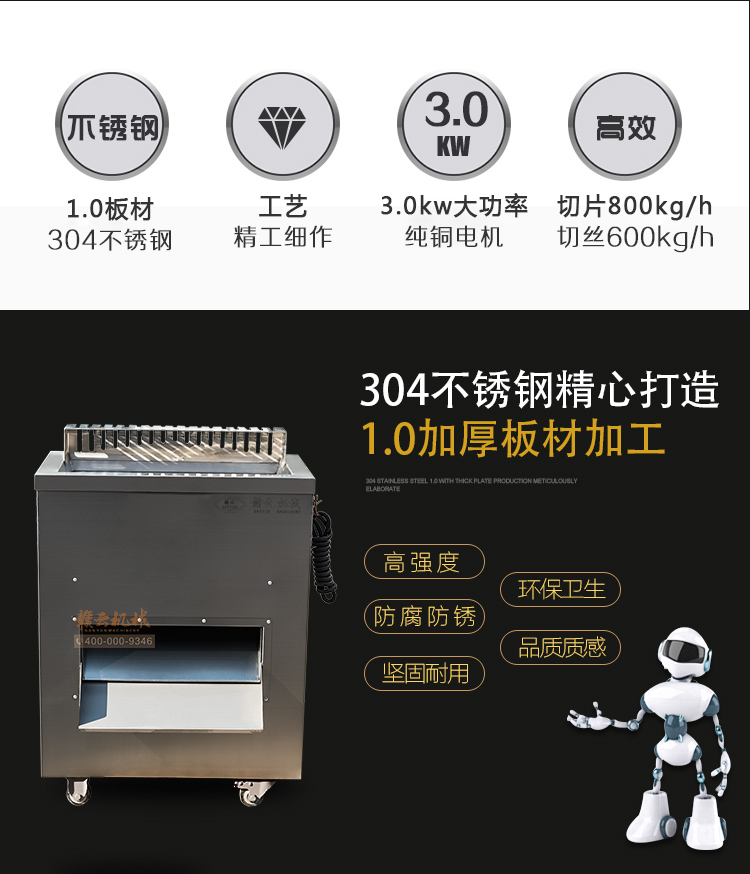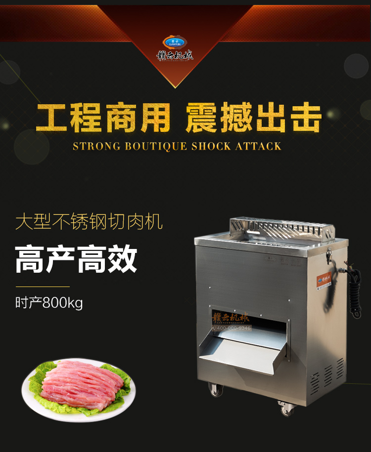 贛云2017款大型切肉機(jī),工程款切肉片肉絲機(jī),采用1.2mm304不銹鋼板材加工設(shè)計(jì),配備3kw大功率純銅電機(jī),380v工業(yè)用電,使得產(chǎn)品性能穩(wěn)定,雙滾切刀設(shè)計(jì),切肉效率高,雙規(guī)格切肉刀具組合,適合大眾需求。